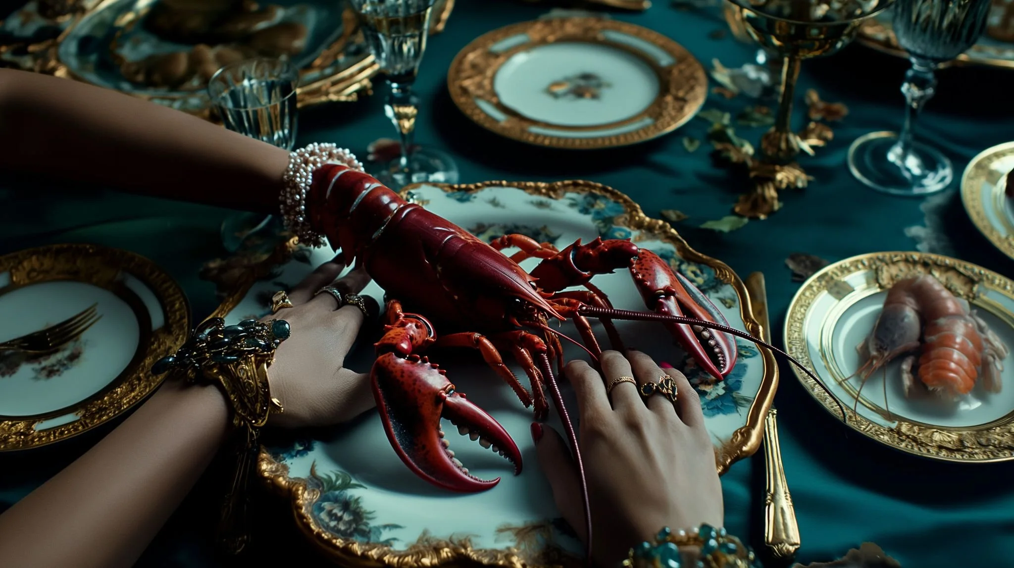 EAT ME © :mentalKLINIK, /IMAGINE, 2410, 2024 AI_GENERATED IMAGE, TEMPERED GLASS, REVERSE GLASS, UV-PRINTING & PAINTING